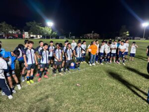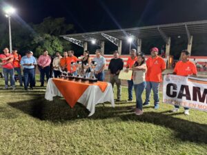 Paraíso, Tabasco. — El alcalde Alfonso Jesús Baca Sevilla encabezó la ceremonia de premiación de los campeones de la Liga de Fútbol en las categorías Sub-13 y Juvenil, cuyos partidos finales se disputaron en el campo del Polideportivo Municipal.