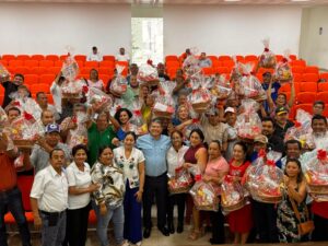 La totalidad de los delegados municipales, junto con jefes de sector, subdelegados y jefes de sección, recibieron canasta navideña como parte de un encuentro que fortaleció la comunicación directa y la coordinación con quienes representan a las comunidades del municipio. En total, 62 delegados estuvieron presentes.