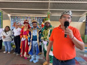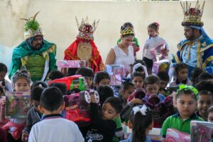 Con sonrisas, entusiasmo y muestras de cariño, el alcalde Ing. Alfonso Jesús Baca Sevilla y la presidenta honoraria del DIF Municipal, «Lic. Alejandra Calderón Dorantes, se sumaron a los Reyes Magos para llevar alegría a miles de niñas y niños del municipio.