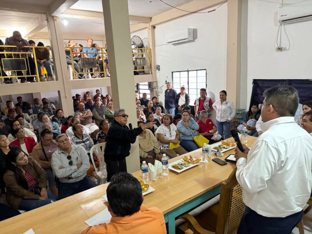 El presidente municipal fue recibido en el salón de reuniones de los locatarios por Gabriel Osvaldo Lanz Oyosa, secretario general de la Unión de Locatarios del Mercado Público, en un ambiente de alegría y aplausos, al darse a conocer una obra largamente esperada que beneficiará directamente a comerciantes y consumidores.